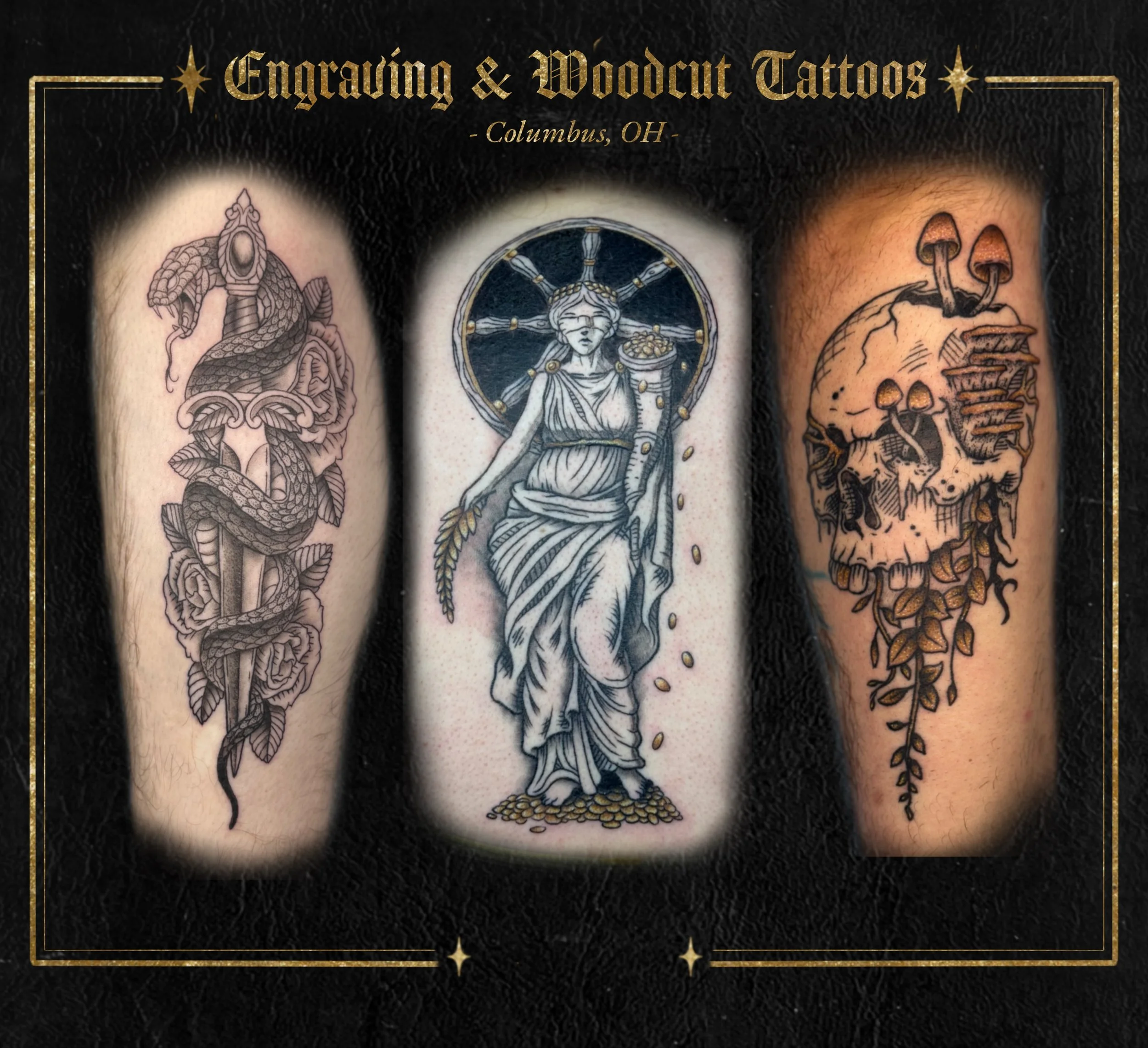 Woodcut & Engraving Tattoos Columbus ohio OH